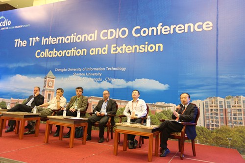 On June 10th, 2015, the 11thinternational CDIO conference was continued in Jinjiang hotel in Chengdu. Professor Ron Hugo from University of Calgary of Canada, professor Johan Malmqvist from Chalmers University of Technology of Sweden, professor Duncan Campbell from QUT of Australia, professor Chen Daoxu from Nanjing University, professor Zhao Yongshen from Yanshan University and professor He Jianxin from CUIT participated in the communication interview in the morning. They had a deep communication on CDIO, OBE and engineering education. Gu Peihua, the member of the CDIO leading committee, the director of CDIO Asia center office chaired this meeting.